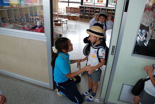 「先生、さようなら」 今日も一日楽しく過ごしました。また明日、元気に会いましょう。
